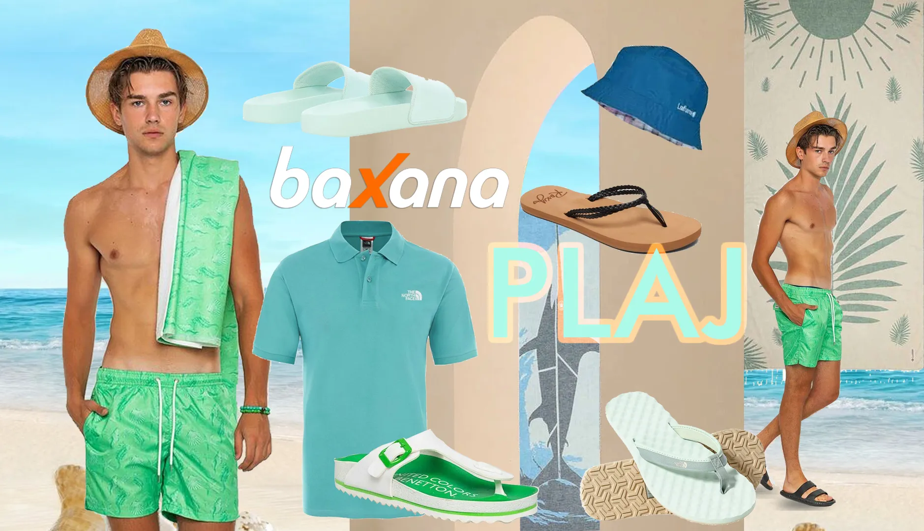 Baxana.com’da yer alan rengarenk deniz şortları, havluları ve tamamen doğal pamuktan üretilen benzersiz tasarıma sahip peştamallar tatilini deniz, kum ve güneşle geçirmek isteyenlerin mutlaka göz atması gereken ürünler arasında yer alıyor. Benetton, Quiksilver, Crocs, The North Face gibi dünya markalarından plaj terlikleri ve şortların da bulunduğu baxana’da cebinizi çok zorlamayacak kamp temalı eğlenceli tişörtlere ve şapkalara da göz atabilirsiniz.